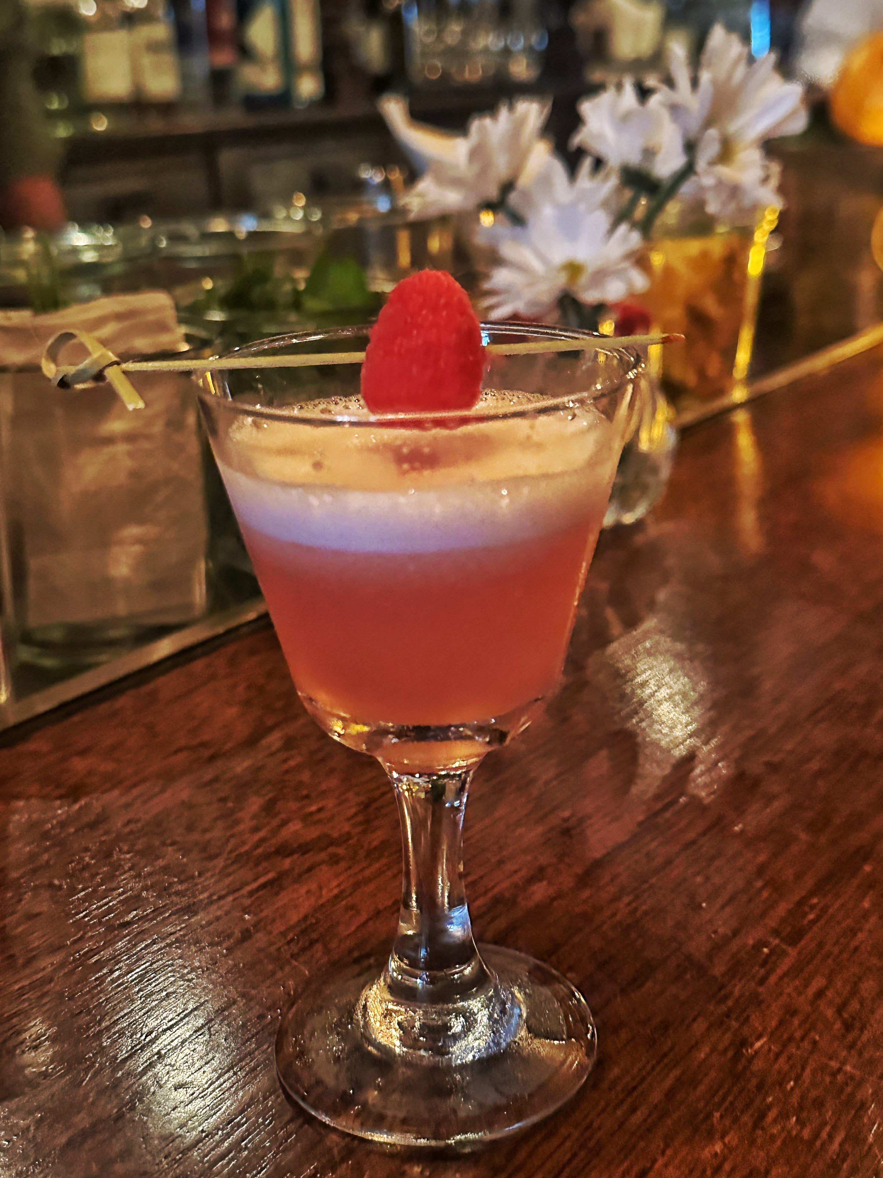 Brooklyn bon vivants and Clover Club regulars David Kaplan and Cat Weaver strolled in and joined me at the bar, and as the bartender welcomed them with mini-versions of the bar’s namesake cocktail (made with gin, raspberry, dry vermouth, lemon, and egg white), he smiled and presented one in front of me as well.