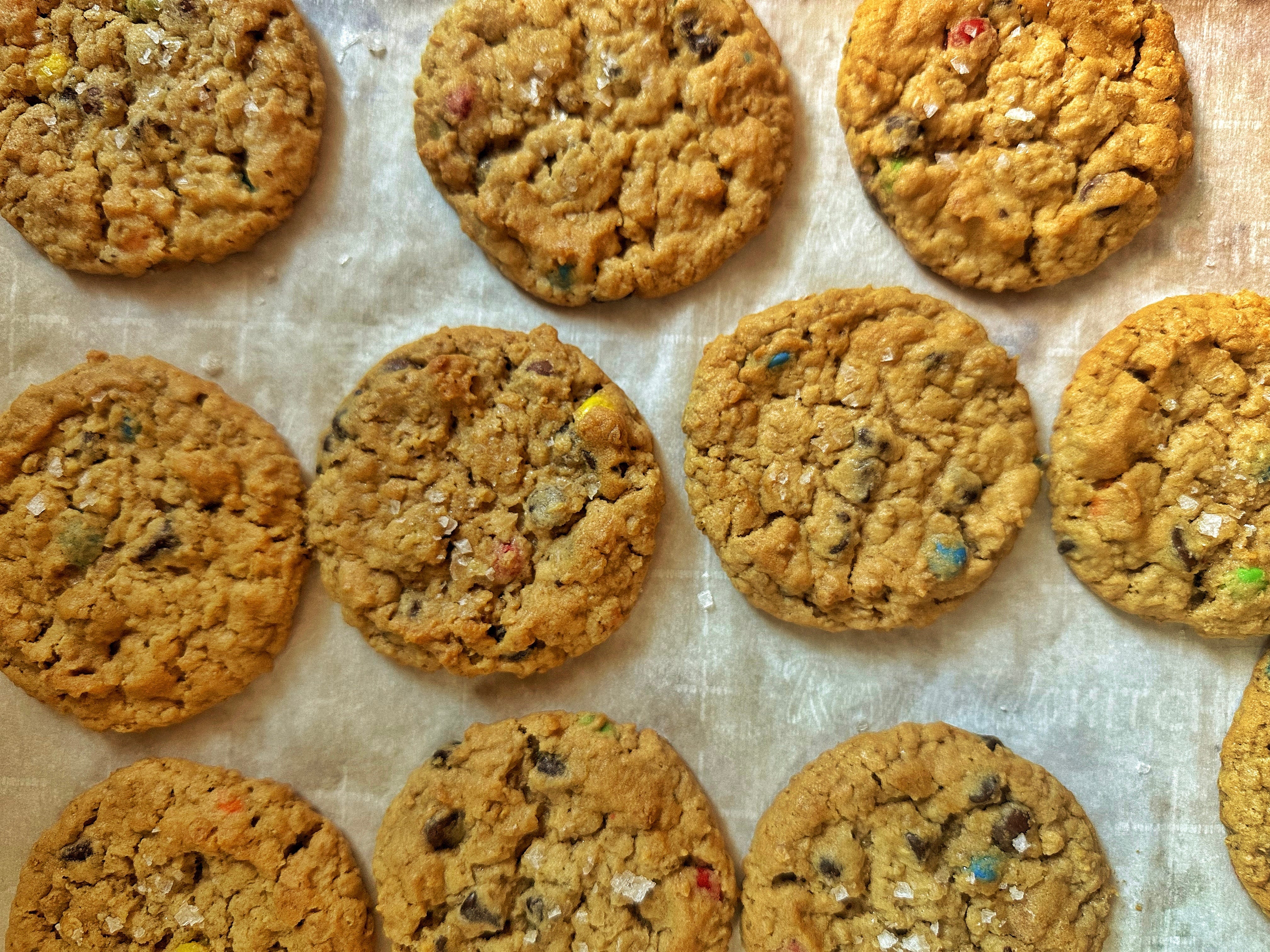 And fall means Monster Cookies (peanut butter, oats, chocolate chips, M&M’s). I’ve made these from scratch many times but I have no shame that these were ready-to-bake from Pillsbury. I made them my own by adding a pinch of flaky sea salt to each one before they went into the oven.